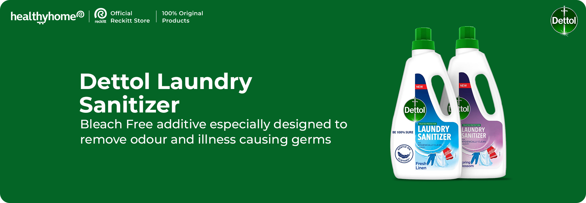 Bleach Free additive especially designed to remove odour and illness causing germs. Go worry free to maintain cloth hygiene. Removes all germs that even detergents may leave behind.