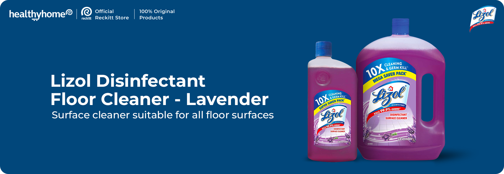 Surface cleaner suitable for all floor surfaces removing 100 types of stains. Guarantees to kill 99.99% of disease-causing bacteria as well as germs while leaving your room with pleasant lavender fragrance.