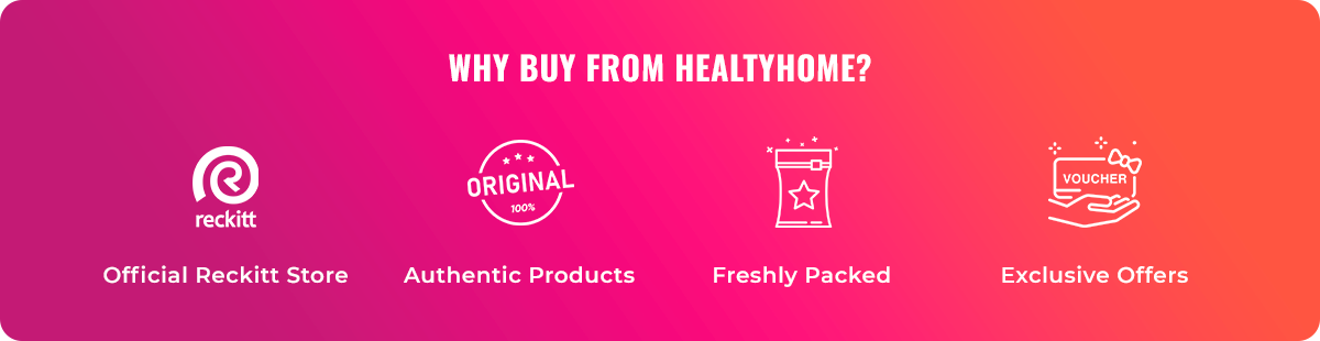 Marketed by/ For Consumer Complaints contact Reckitt Consumer Care at: Reckitt Benckiser (India) Pvt. Ltd., DLF Cyber Park, 6th & 7th Floor (Tower C), 405 B, Udyog Vihar Phase III, Sector 20, Gurugram-122016, India. Toll Free Number: 18001035012, Email:ConsumerHealth_India@rb.com |