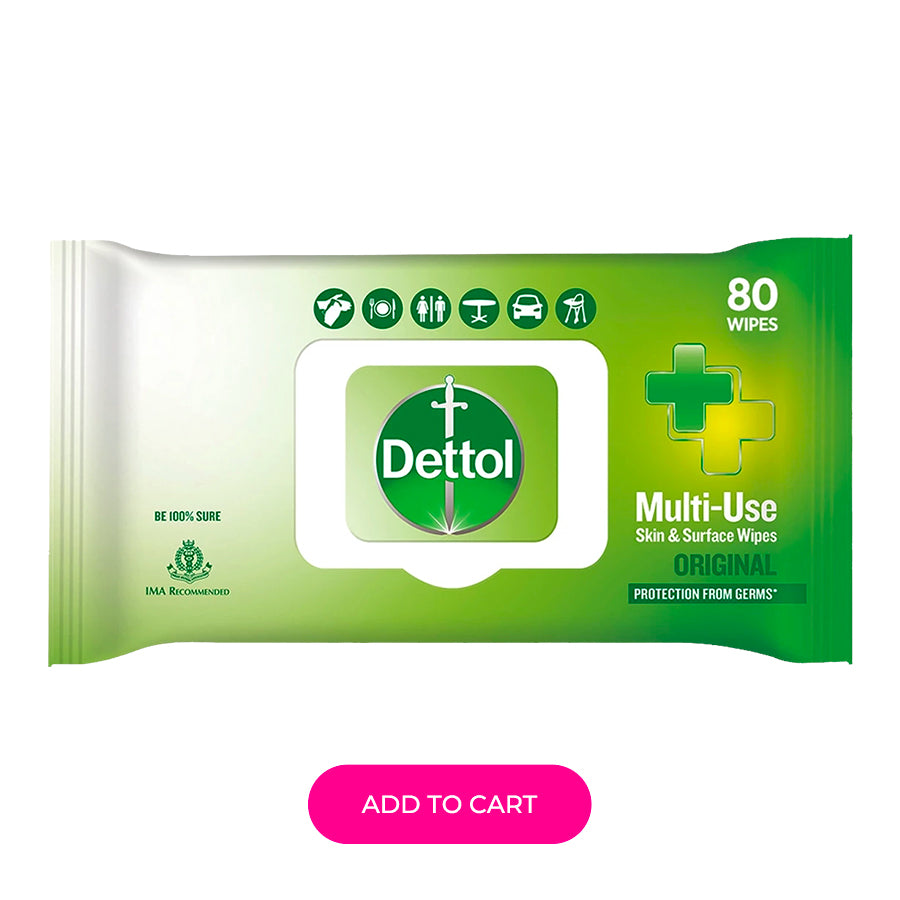 - Then disinfect the surface by wiping it down with disinfectant wipes like Dettol Surface Cleansing Wipes or wiping it down with a disinfectant-sprayed towel.